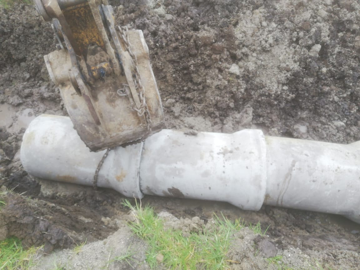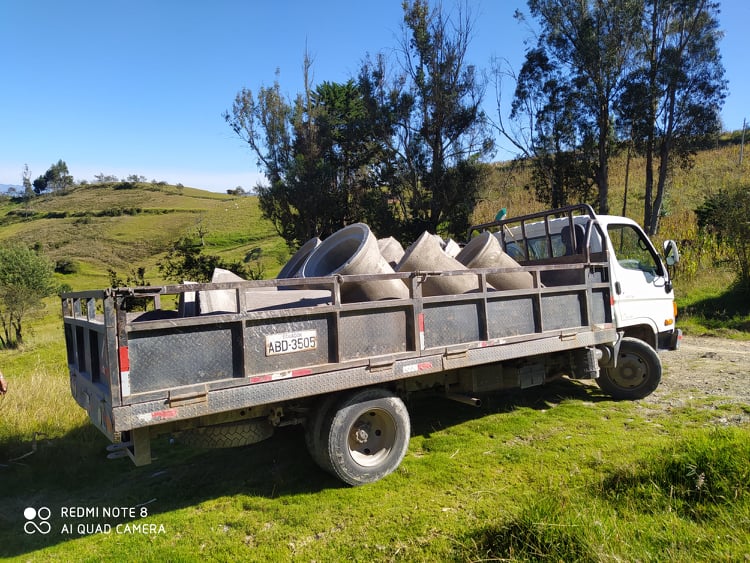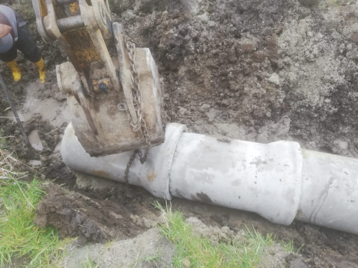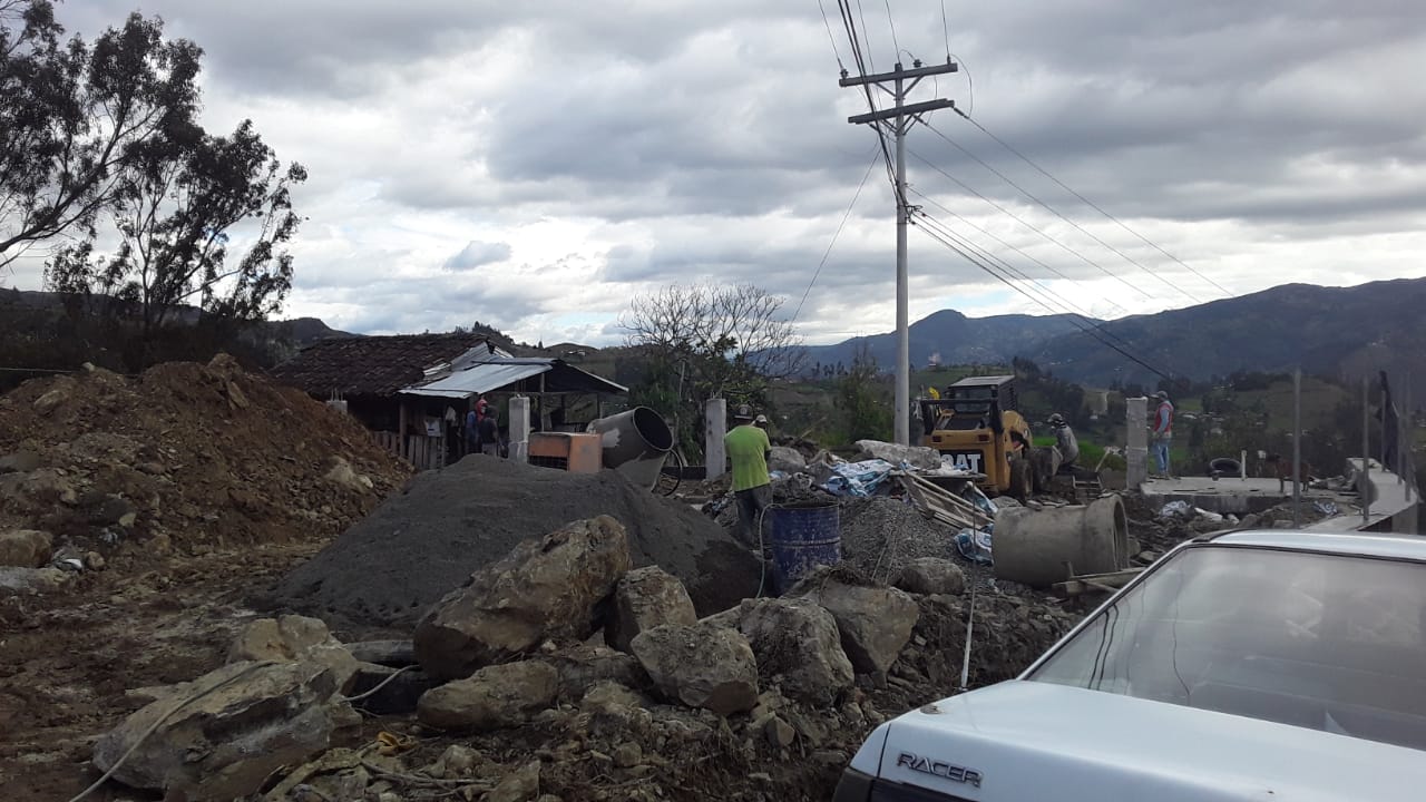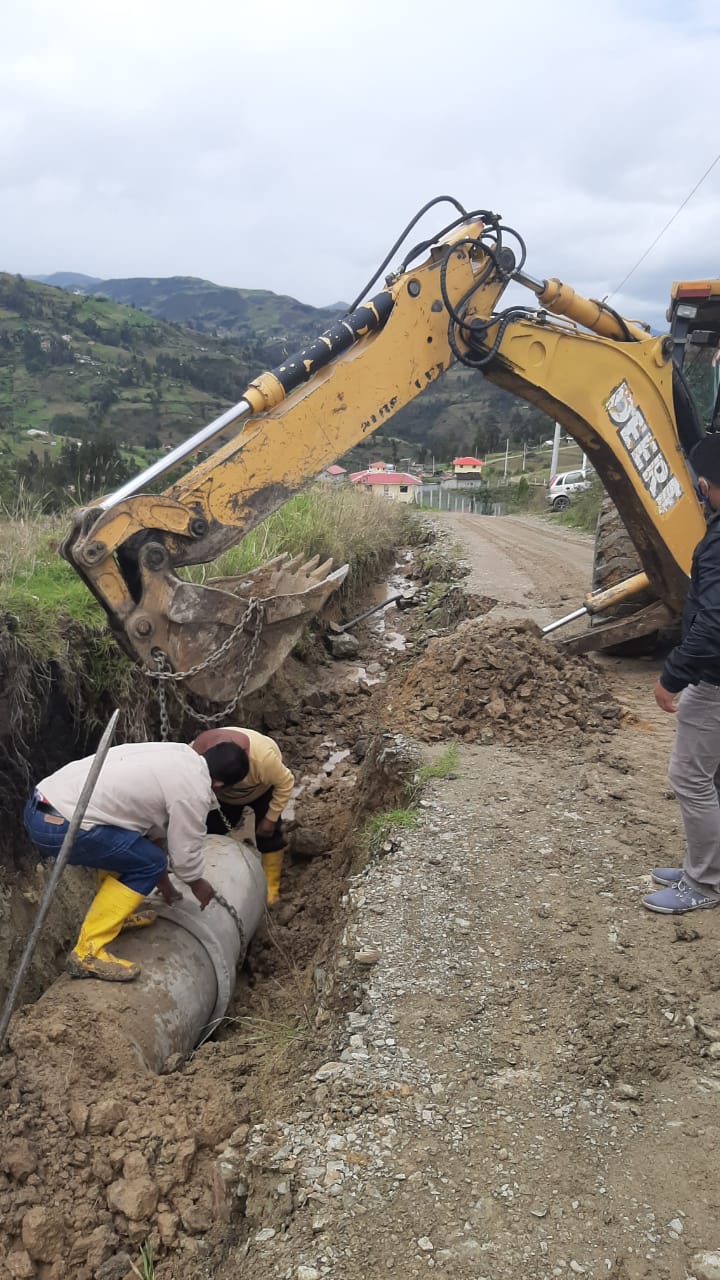 - Compra de Tuberia de cemento y aquiler de horas maquina para limpieza de caminos, encausamiento de aguas y colocacion de tuberias para pasos de agua lluvio en las comunidades de San Jacinto, Chaguarloma, Centro Parroquial, Cancay, Uachucay.